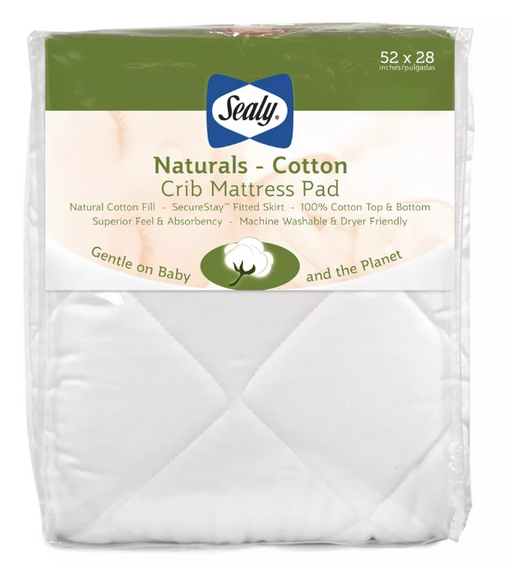 Sealy Naturals Cotton Fitted Crib & Toddler Mattress Pad