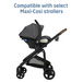 - Compatible with select Maxi-Cosi strollers to form a complete travel system