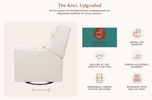 BabylettoThis item can be ordered, please contact us for estimated lead timeOur #1 best selling recliner just got an upgrade! The Kiwi Plus has all the best features of our popular Kiwi Electronic Recliner & Glider - no...