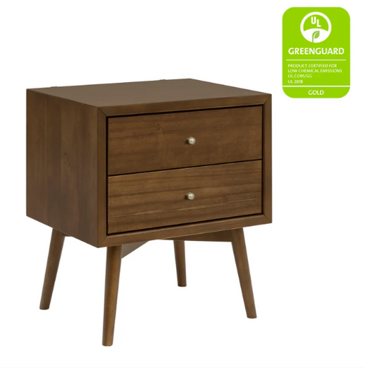 BabylettoThis item can be ordered, please contact us for estimated lead timeThe Palma Nightstand with USB port and is a sophisticated mid-century inspired design with tapered legs, brushed metal hardware, and two smooth-gli...