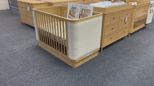 BabylettoThis item can be ordered, please contact us for estimated lead timeThe Bondi Boucle 4-in-1 Convertible Crib celebrates boho-inspired design with its warm wood tone, rounded corners, and cozy boucle upholstery to cr...