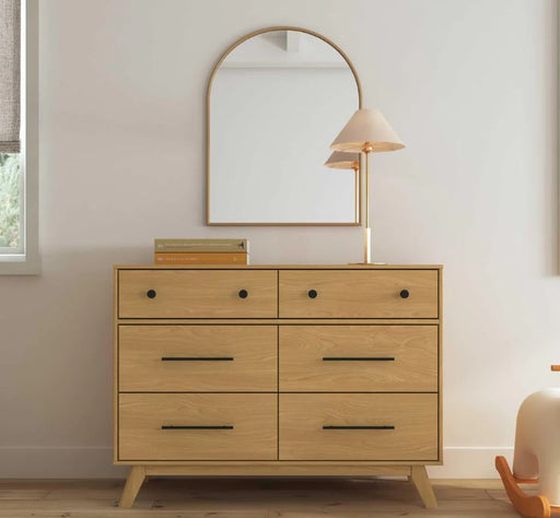 DaVinciThis item can be ordered, please contact us for estimated lead timeThe Otto 6-Drawer Dresser captures the timeless mid-century modern design with its clean lines, flared legs, and metal hardware. Made with high-...