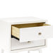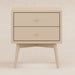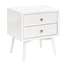 The Palma Nightstand with USB port and is a sophisticated mid-century inspired design with tapered legs, brushed metal hardware, and two smooth-glide drawers. Easy setup with minimal assembly required.