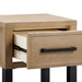 The Newbern Nightstand pairs clean lines with a metal base for a fresh take on farmhouse style. A smooth-glide drawer and open lower space offer practical storage, while the textured finish adds a refined touch.