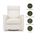 The Willa Pro has all the best features of our popular Willa Plus Power Recliner & Glider - now with additional lumbar support and light feature for even more personalized comfort! Gently soothe or rock your baby to sleep with it's easy swivel and gliding motions. Effortlessly recline with the press of a button with the easy-to-use panel on the outer righthand side of the chair. Elevate your comfort by adjusting your level of support with the power headrest and inflatable lumbar functions. Keep cozy with an under chair light to keep baby asleep during late night feeds.