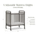 • GROWS WITH BABY: Our cribs have 4 adjustable mattress positions to help transition as your baby grows and develops from newborn to toddler. Easily lower the mattress position as your baby begins to sit, pull up, and stand.